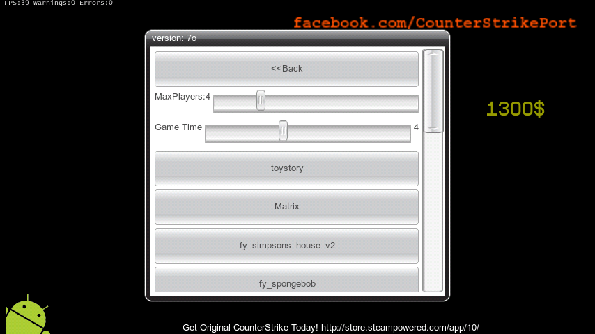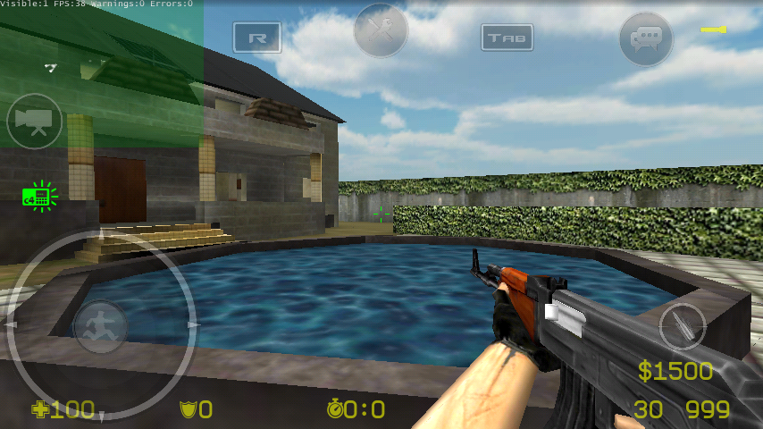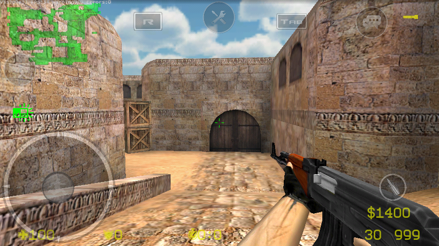 Оружие пока только одно: стандартная моделька АК-47 из CS 1.6 с деревянным прикладом. Бомбы, заложники, фонарик - пока не реализованы. Только командный дизматч. Причём интересно, что два противника могут убить друг друга одновременно. Неплохо реализован регдол. Ещё лишь по одному скину-шкурке у контеров и терроров, но автор обещает добавить стандартные.